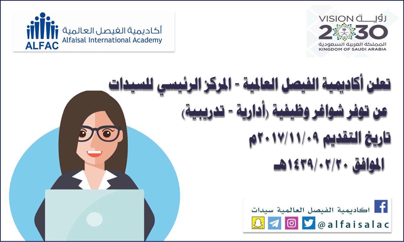 أكاديمية الفيصل نساء Pa Twitter تعلن اكاديميه الفيصل العالمية المركز الاكاديمي للسيدات عن توفر شواغر وظيفية ادارية وتدريبية للتواصل 0537355648 0555765934 0537355421 Https T Co 1thtasqj5n