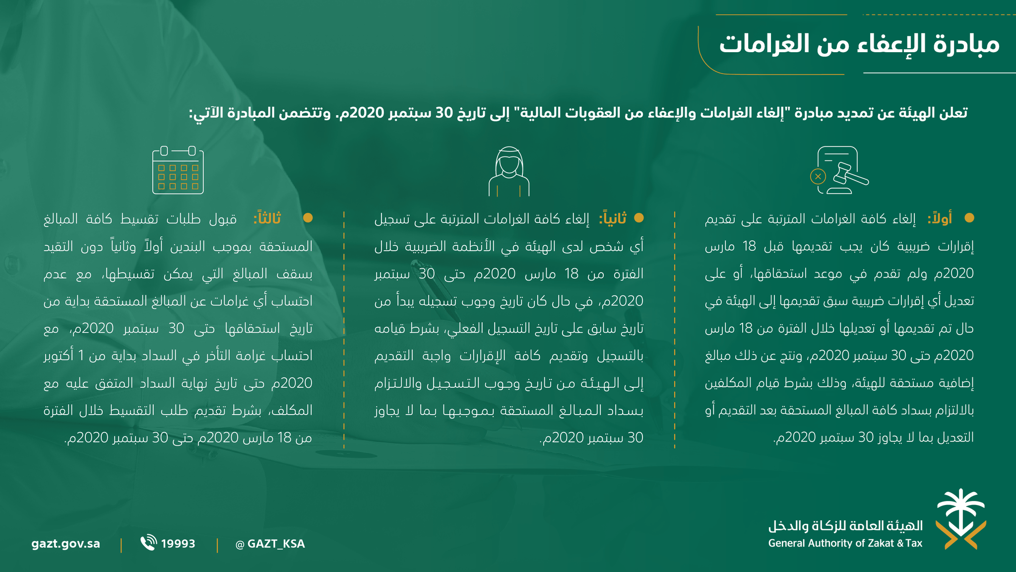 الهيئة العامة للزكاة والدخل On Twitter الزكاة والدخل تعلن تمديد مبادرة إلغاء الغرامات والإعفاء من العقوبات المالية للمكلفين حتى تاريخ 30 سبتمبر 2020م