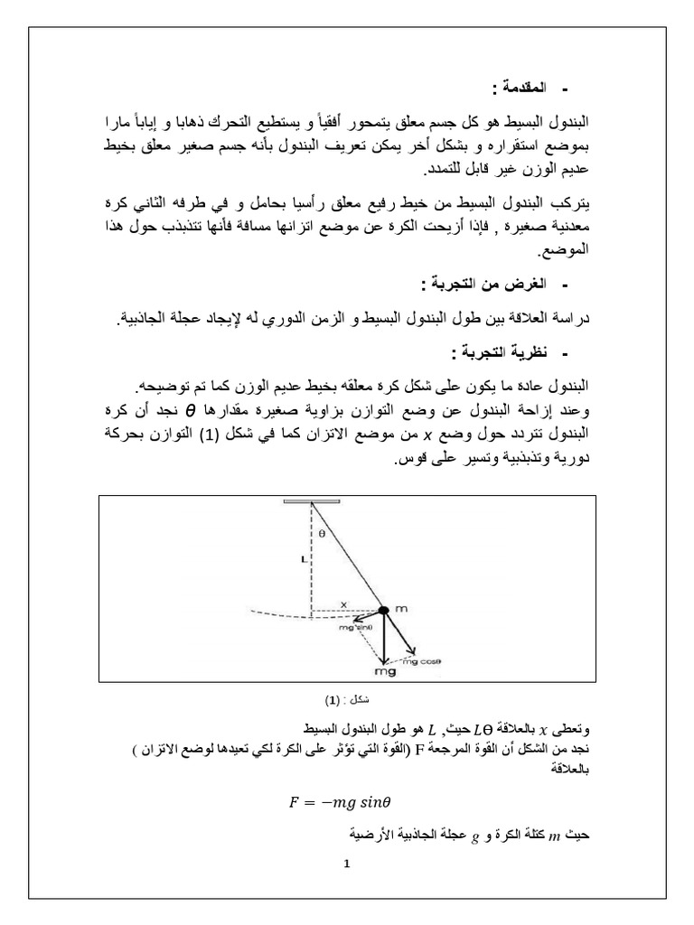 تقرير البندول البسيط Docx