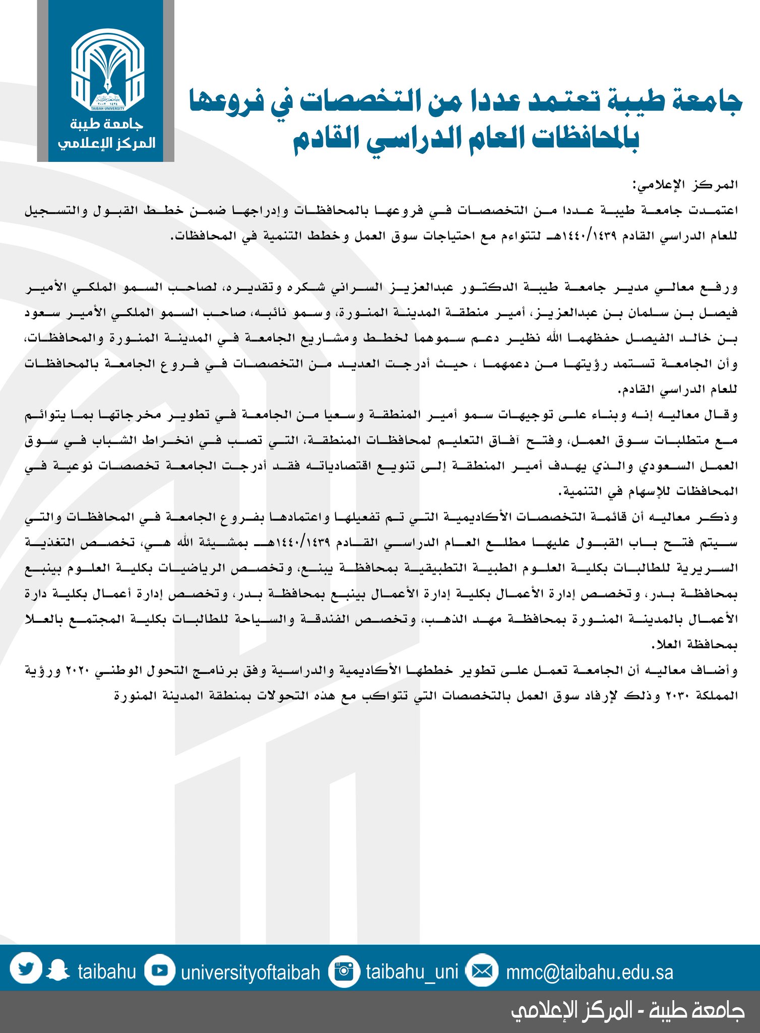 جامعة طيبة Taibah U Auf Twitter معلومة اقل نسبة تم قبولها في الدفعة الأولى بـ جامعة طيبة للطلاب والطالبات