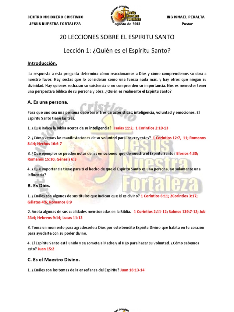 1 20 Lecciones Sobre El Espiritu Santo Espiritu Santo Biblia