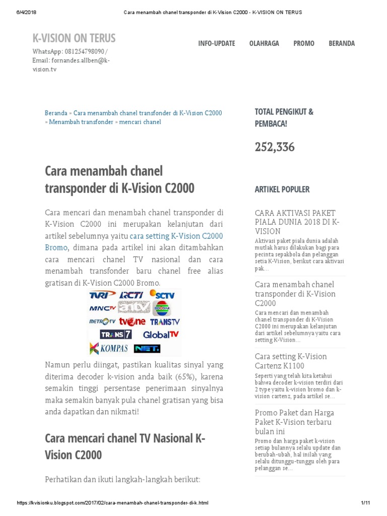 Cara Menambah Chanel Transponder Di K Vision C2000 K Vision On Terus