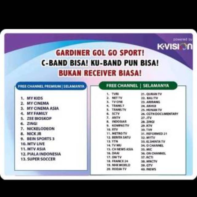 Daftar Chanel Parabola K Vision Ku Band Cartenz 085103022986 K Vision Jogja Yogyakarta 085103022986