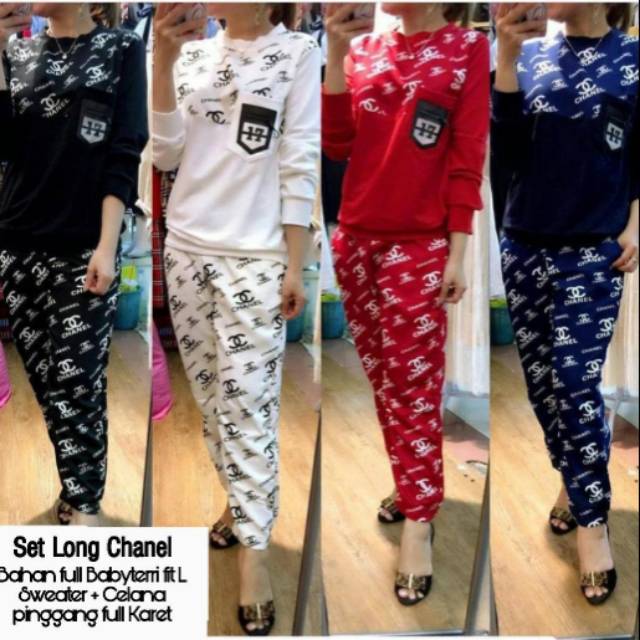 Bisa Cod Set Long Chanel Bahan Babyterri Sweater Celana Kantong Hidup Kanan Kiri Fit L Hv Shopee Indonesia