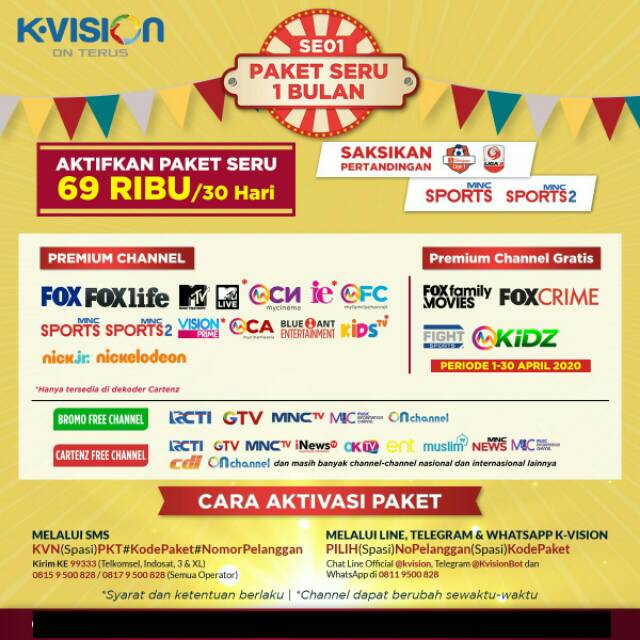 Kvision On Twitter Berikut Pilihan Paket K Vision Bromo Dan Cartenz Terbaru Kamu Bisa Nonton Liga 1 Indonesia Euro 2020 Dan Tayangan Seru Lainnya Dengan Mengaktifkan Paket Paket Berikut Ini Paket Ini Berlaku