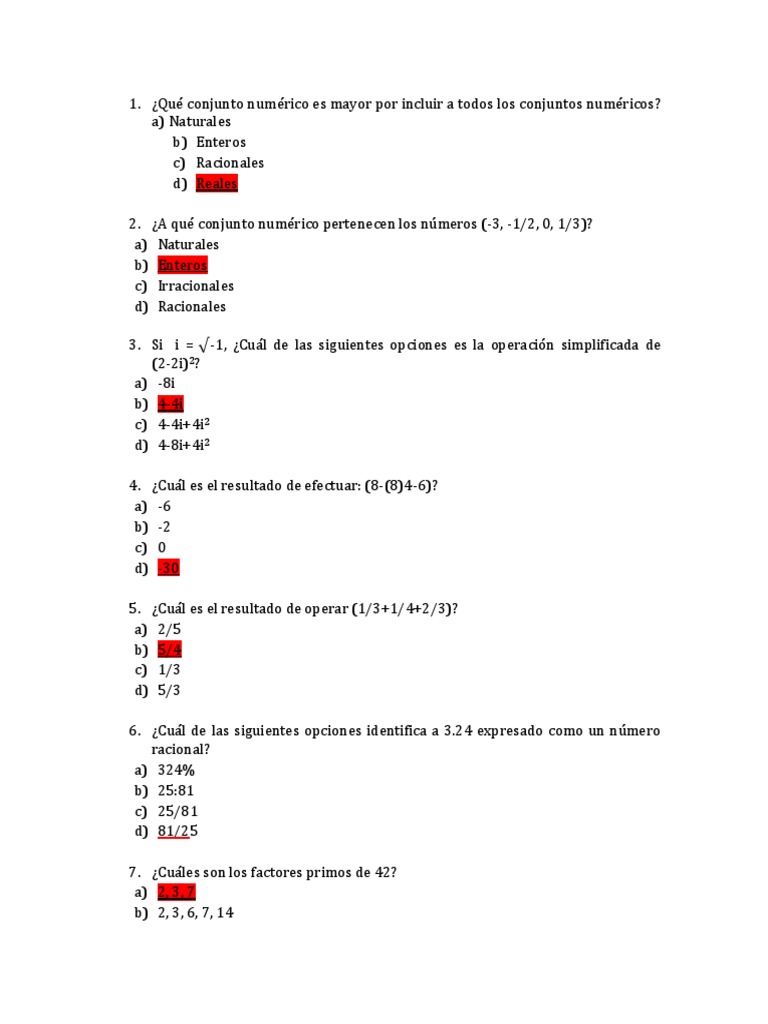 Temario No 1 Matematicas Resuelto Numero Racional Proposicion